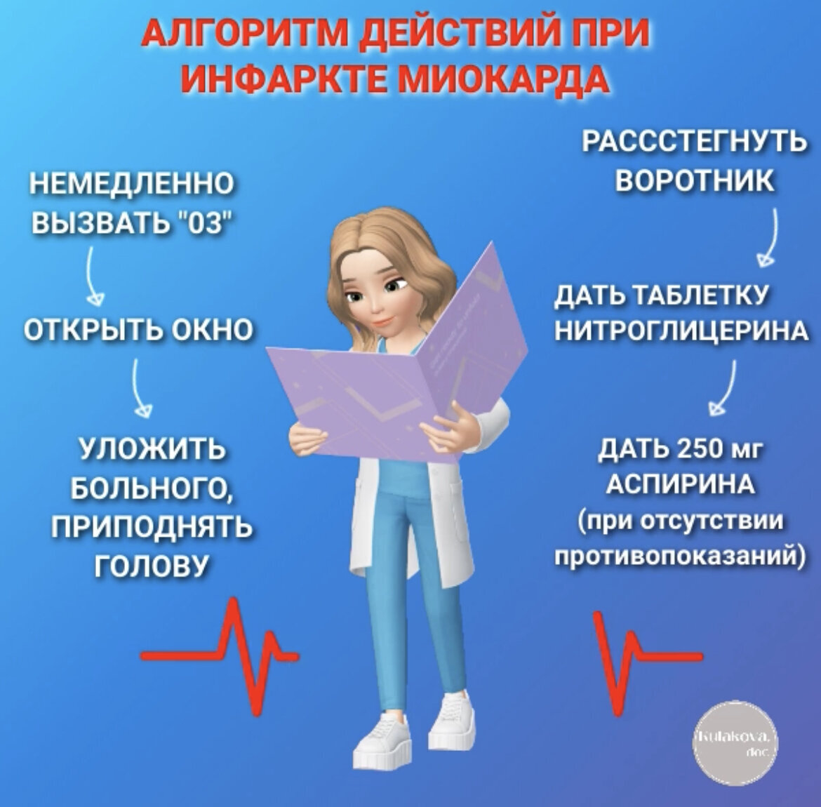 «Инфаркт миокарда, воот такой рубец…» Все мы слышали о таком заболевании, но не все знают, как оно проявляется. И чем помочь человеку в первые минуты? К сожалению, до сих пор встречаются случаи, когда человек недооценивает свое состояние и поздно обращается за медицинской помощью. А чем позднее начинается лечение, тем сложнее спасти пациента и выше процент инвалидности и смертельных исходов… Инфаркт миокарда - это жизнеугрожающее осложнение ишемической болезни сердца (ИБС), связанное с прекращением поступления крови по сосуду к определенному участку сердечной мышцы и ее омертвлением (некрозом). В классическом варианте ИБС проявляется дискомфортом или болью в области сердца. Это называется стенокардией. Причем локализоваться она может и по центру за грудиной, и в области левого плеча, и под левой лопаткой. Локализация боли - не самое главное. Главное отличие этой «сердечной» боли от других - это связь с физической нагрузкой. Стенокардия чаще всего появляется при нагрузке (пре