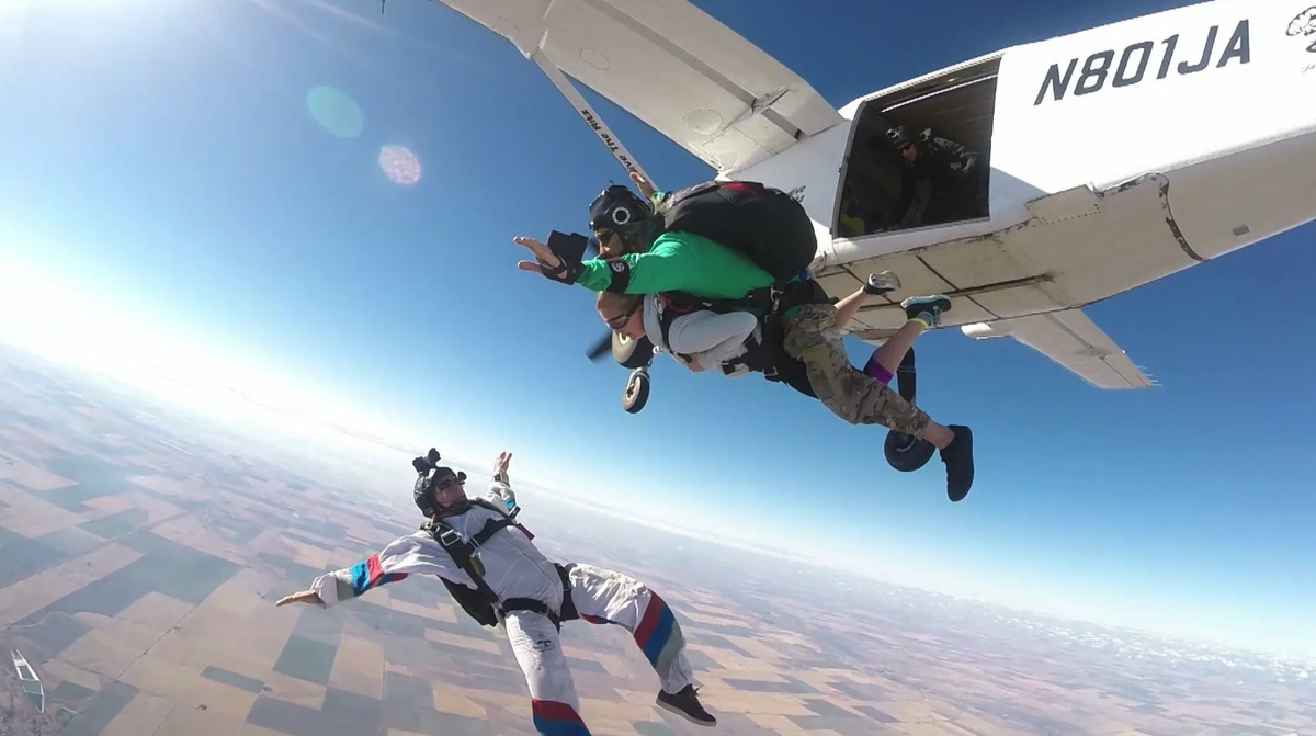 Володя сидел в самолёте и разглядывал группу, которая сегодня должна была прыгать. Все трое клиентов прыгали тандемом с кураторами. С ним будет прыгать молодой паренёк, он волновался, похоже, больше всех.