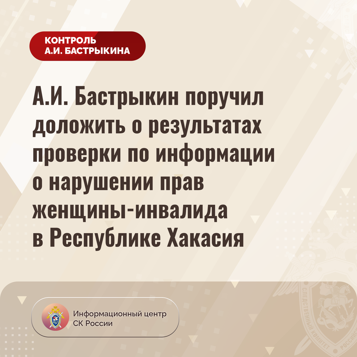 Председатель Следственного комитета Российской Федерации Александр Иванович Бастрыкин поручил руководителю ГСУ СК России по Красноярскому краю и Республике Хакасия Алексею Леонидовичу Еремину представить доклад об установленных в ходе проведенных проверочных мероприятий обстоятельствах, а по завершении проверки – о ее результатах.