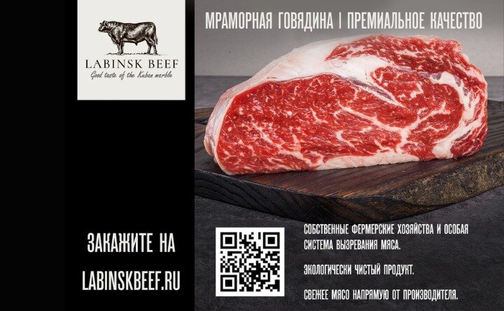 Перед новогодними праздниками «Агрокомплекс» имени Н. И. Ткачёва запустил на сайте labinskbeef.ru предзаказ премиальной мраморной говядины «Labinsk beef» напрямую с производства. Как отметил руководитель сервиса Станислав Глазунов, в мясных лавках Юга России говядина премиального качества встречается нечасто по сравнению с другими видами мяса. «На нашем сайте покупатель может заказать мраморную говядину в нужном объёме прямо с мясокомбината. После вызревания в специальной камере на производстве говядину доставят в один из магазинов фирменной розничной сети “Агрокомплекс Выселковский”. А в крупных городах возможна доставка домой», — рассказал он. Для создания продукции под брендом Labinsk beef «Агрокомплекс» выращивает бычков абердин-ангусской породы. Созревая несколько недель в холодильной камере, мясо под воздействием ферментов проявляет характерный мраморный рисунок и становится нежнее. Во время тепловой обработки жировые прослойки тают, стейк наполняется соком и становится мягким. В