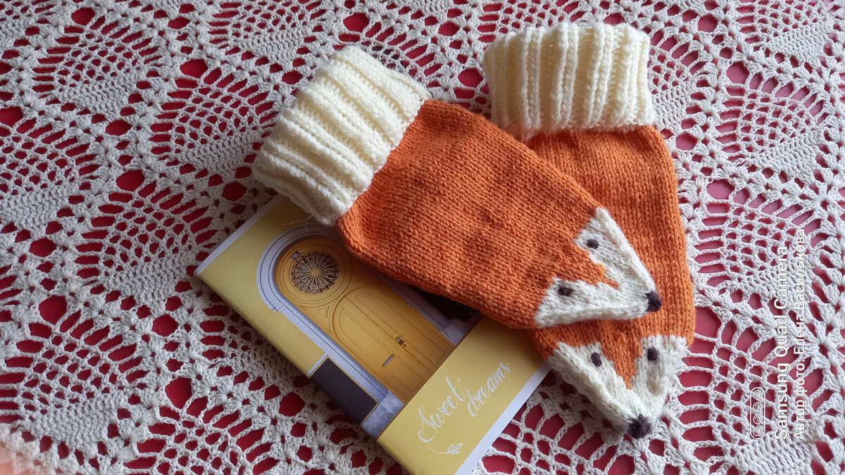 Всем привет! Сегодня уже последний день ноября🍁🍁🍁 и последний отчётный день в совместном проекте Бабушкины носочки. Я связала в этот раз, на мой взгляд, интересную пару 😊 Я назвала эти носочки Рыжая плутовка. Вязала очень просто: - резинка 2×2 со смещением (для фиксированного отворота); - "бабушкина" пяточка (стенка лицевой гладью, низ - платочной вязкой); - жаккард девять рядов для формирования мордочки; - ленточное закрытие. 52 петли. Резинка 20 рядов, смещение, ещё 15 рядов резинки. Смена нити на рыжую😊 10 рядов лицевой гладью, пяточка. Высота стенки 14 рядов. После пяточки убавила до 48 петель, провязала 19 рядов, убавила до 44, провязала ещё 15 рядов и начала формировать мордочку. Сделала глазки, и готово! Мне очень понравилось то, что у меня получилось! А вам?