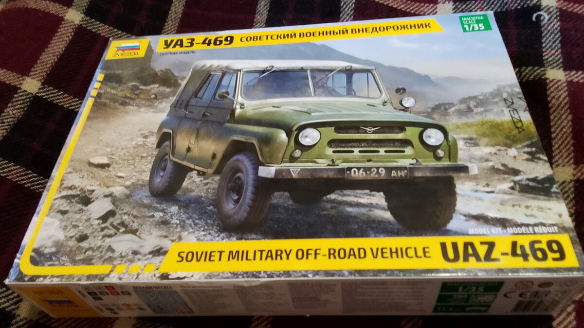 Доброго времени суток уважаемые подписчики и гости канала Деревенский моделист. Совсем недавно у меня случилось два события. Во первых неожиданно случился день рождения, а во вторых, супруга наконец то прониклась к моему увлечению и подарила мне новинку от Звезды, набор модели УаЗ-469. Вчера он приехал. И сегодня я делюсь с вами первыми впечатлениями. И так, сразу бросается в глаза красивый боксарт. С обратной стороны которого представлена готовая модель. А с боку показаны нужные краски, размер готовой модели и количество деталей. Теперь давайте заглянем внутрь. И тут мы видим много, много всего интересного. По этому рассмотрим подробней. Всего в наборе пять литников включая прозрачные детали. Сделанные, как по мне весьма качественно, на фарах даже есть рифление. А лобовое остекление как и положено старым УаЗикам сделано из двух половинок. К стати, если кто не знал, у УаЗика половинки лобовых стёкол взаимо заменяемые, при помощи ключа на 10 и какой то матери можно, например поменять