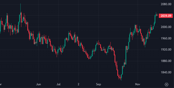 На долю этих стран приходится свыше 50% физического спроса на драгметалл, поэтому его дальнейший рост находится под вопросом. Цена золота интервалами 1 день Цена золота вернулась в область исторических максимумов, однако ее дальнейшая динамика выглядит неочевидной. Недавняя волна роста золота и серебра была обусловлена усилением ожиданий того, что цикл повышения процентных ставок центробанками Запада близок к завершению. Но есть и другие силы, которые оказывают на драгметаллы значительное влияние. На долю Китая и Индии приходится свыше 50% физического спроса на золото. Цена драгметалла и в юанях, и в рупиях также находится в области исторических максимумов, и данный фактор начинает провоцировать снижение спроса на золото в рознице. В этом году спрос на золото в Индии был сильным, однако на прошлой неделе дисконт, с которым дилеры продают драгметалл относительно официальной цены, удвоился до $6 за унцию (с учетом налогов и сборов). Схожий феномен наблюдается и в Китае: на прошлой неделе