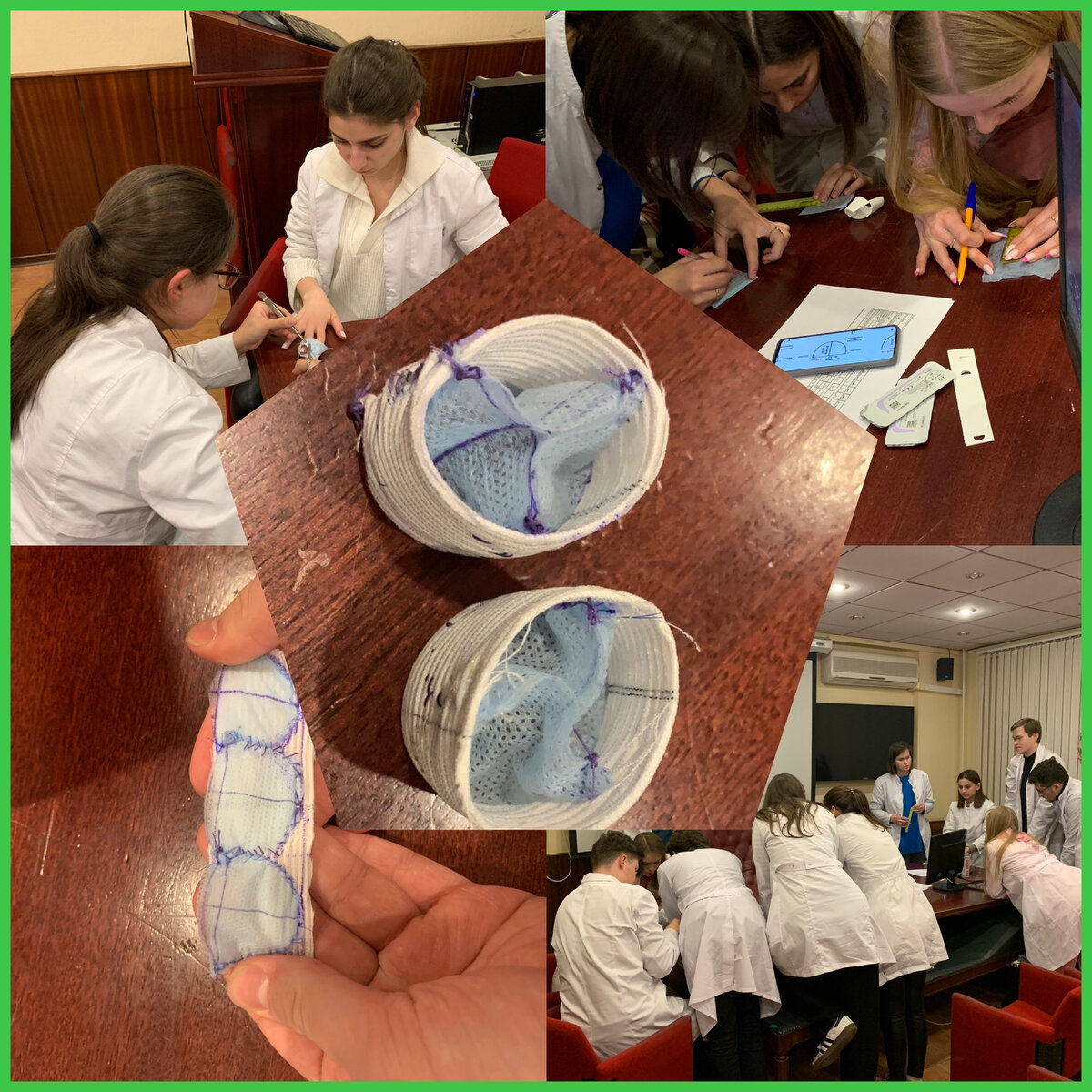 29 ноября в рамках заседания СНК и Школы мастерства «Мини-инвазионная и реконструктивная сердечно-сосудистая хирургия» студенты провели увлекательную и уникальную практическую работу - шили макет Русского кондуита. Русский кондуит - это операция, разработанная в стенах Сеченовского Университета, при которой можно осуществить замену поражённого клапана и аорты клапансодержащим кондуитом, основой которого служат створки из собственных тканей пациента (перикарда). Студенты самостоятельно осуществляли все этапы работы, начиная от выбора материала и инструментов до процесса шитья. Каждый кружковец получил возможность применить свои знания и навыки, приобретенные в ходе лекций и практических занятий. Практические навыки и моделирование этапов операции - это очень важный этап в становлении хирурга любого направления, поэтому ребята были сосредоточены и внимательны на каждом этапе работы. В результате получили отличный опыт и уверенность в своих способностях. Уверен, что полученные знания и