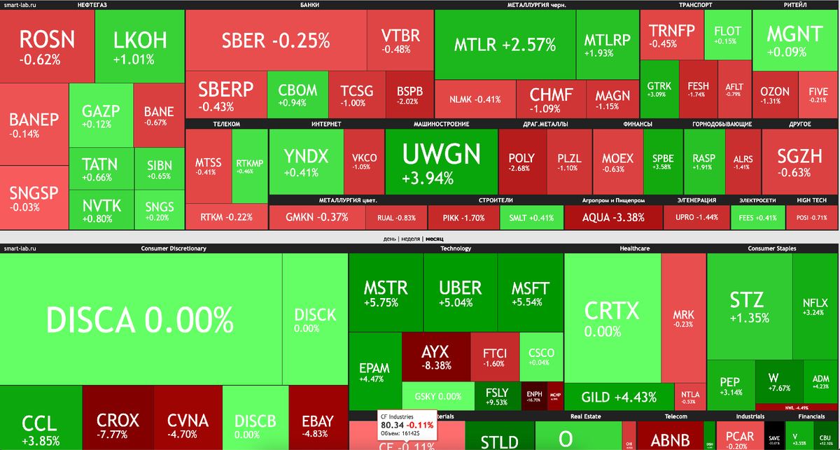 На торгах в Москве снижение, рубль может ослабнуть до 89 за доллар 📈 В среду индекс МосБиржи потерял 0,7%. Бумаги экспортеров оказались под давлением из-за укрепления рубля. Однако рост цен на нефть в течение дня не дал российским акциям упасть еще больше. Вчера АЛРОСА опубликовала отчетность по РСБУ за 9М23, Софтлайн объявил о начале SPO с ценовым диапазоном 140,00–149,84 руб./акция, а Инарктика уточнила цену SPO — она составит 900 руб./акция. Ближе к вечеру результаты по МСФО за 3К23 представили Транснефть и Аэрофлот. На американском фондовом рынке существенных изменений не было. Инвесторы обратили внимание на комментарии отдельных представителей ФРС, в том числе члена совета управляющих Кристофера Уоллера, что цикл повышения ставок завершается. Рынок также анализировал предварительные данные по ВВП США за 3К23 — он вырос на 5,2% при прогнозе 4,9%. 🇷🇺 Рубль может немного ослабнуть после завершения периода налоговых выплат. Вчера рубль сумел отыграть потери вторника и восстановилс