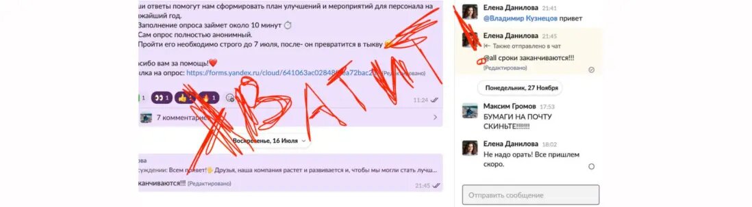 Когда разговор начинается с такого вопроса, чаще дальше ничего хорошего ждать не стоит. Например, дальше может быть сообщение в общем чате: