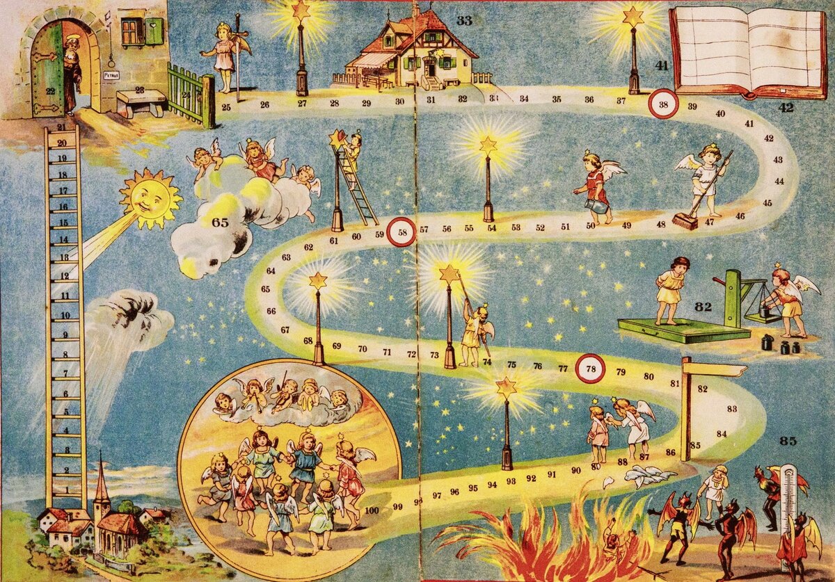 Старинная настольная игра . Распечатайте и поиграйте с вашими малышами в рождественский вечер . Вам понадобится игровой кубик и фишки .