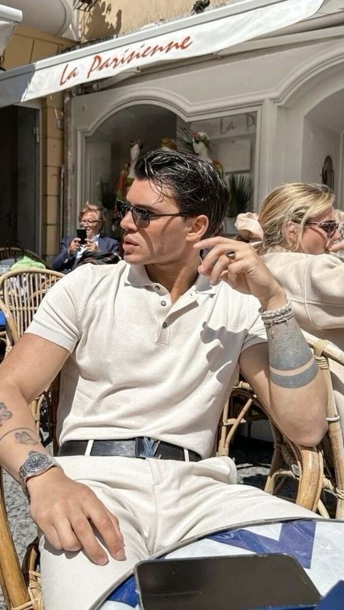 Этот свитшот лаконично смотрится с нашими брюками и Поло, он также нейтрального цвета и так же имеет фактуру, идём дальше!