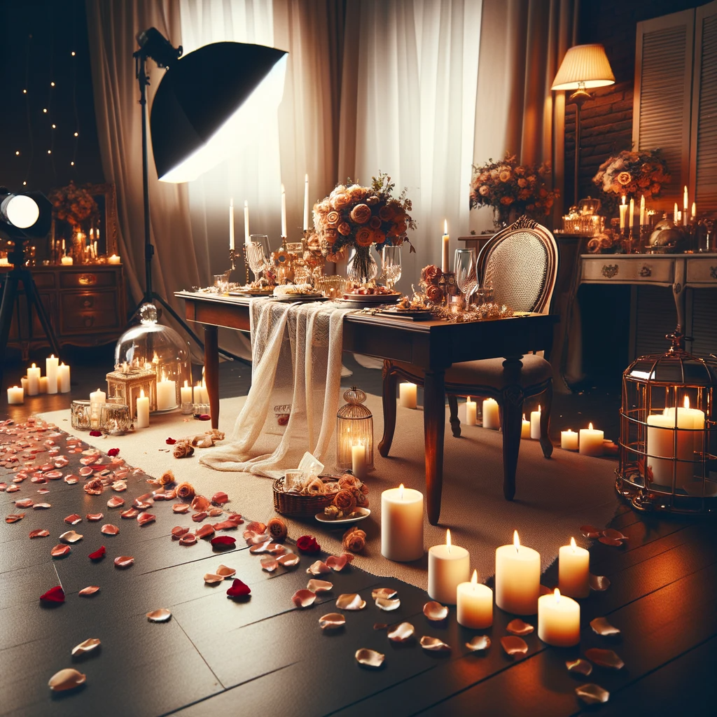 Вечер в фотостудии Миши был теплым и уютным. Он устроил всё как в сказке: мягкий свет ламп, лепестки роз, рассеянные по полу, и тихая музыка, которая слегка колыхала воздух. Саша вошла и остановилась на пороге, покрытая легким румянцем удивления. "Миша, это... это прекрасно," прошептала она, обводя взглядом пространство, наполненное романтикой. Миша подошёл к ней, взял за руку и повёл к столу, уставленному свечами и изысканными блюдами. Они уселись, и весь вечер пронёсся в беседах, смехе и взглядах, полных нежности. Когда ужин подходил к концу, Миша встал и опустился на одно колено перед Сашей. Он достал из кармана маленькую коробочку и открыл её, представляя ей кольцо. "Саша, эти несколько месяцев показали мне, как ты важна для меня. Ты стала частью моей жизни, и я не хочу больше быть без тебя. Ты выйдешь за меня замуж?" Слёзы радости вспыхнули в глазах Саши. Она кивнула, не в силах вымолвить ни слова, и бросилась к нему в объятия.