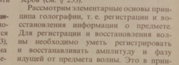 Мы думаем, что Д. Габор хотел получить поперечное изображение, и получил, а всякая теоретическая шелуха была навешана уже впоследствии. Что значит «уметь регистрировать амплитуду и фазу»? Где галогенид, а где фаза? Каким образом можно зарегистрировать фазу? Из фотографии известно, что не то, что фазой, а целым фотоном иногда с ним особо ничего не сделаешь при (при короткой экспозиции). Это мы про красный фонарь в лабораториях. Вот, как это выглядит? Фаза и галогенид? (стрелочки это фазы и противофазы) Что с галогенидом произойдет, если на него сначала фаза упадет, потом противофаза, потом опять фаза, потом опять проти….. Про амплитуды, мы вообще помолчим, никто не знает, что это такое. Далее Для начала: кому «известной фазы»? Потом, «распределение в интерференционной картине, возникающей при суперпозиции волнового поля объекта и когерентной ему опорной волны.» Ну, распределение там будет полосками. Где в фазу, там есть, где не в фазу погасится. В теории. (На практике, темные полосы в