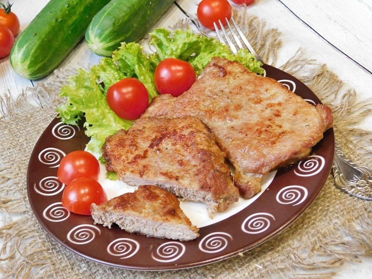 Подробный рецепт приготовления отбивных из свинины: Ингредиенты: - 4 свиных отбивных (около 150-200 г каждая) - 1 чашка муки - 2 яйца - 1 чашка сухарей или панировочных сухарей - Соль и перец по вкусу - Растительное масло для жарки Инструкции: 1. Приготовьте отбивные, размазав их до толщины около 1 сантиметра. Это можно сделать, положив свиные отбивные в пластиковый пакет и немного отбив их молотком для отбивания мяса. 2. Подготовьте 3 миски: в одной налейте муку, в другой разбейте яйца и взбейте их вилкой, а в третьей налейте сухари или панировочные сухари. 3. Посолите и поперчите свиные отбивные по вкусу. 4. Покройте каждую отбивную в муке, затем обмакните в яйце и в конце обваливайте в сухарях, чтобы равномерно покрыть всю поверхность. 5. Разогрейте растительное масло на сковороде на среднем огне. Когда масло достаточно разогреется, выложите отбивные на сковороду и обжаривайте их по 3-4 минуты с каждой стороны, пока они не станут золотистыми и хорошо прожаренными. 6. После
