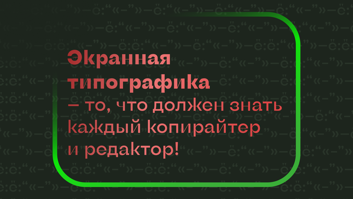 В отличие от просто типографики, которая о шрифтах, гарнитурах, интервалах, кеглях и прочем, экранная — всецело про оформление текста именно в рамках подбора и расстановки символов. Грубо говоря, это о том, какие и где нужно ставить кавычки и тире (ответ вас удивит), какие знаки нужно отбивать пробелами и в каких местах, etc.
