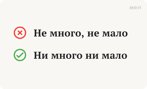 - В выражениях, где соседствуют два противоположных по смыслу наречия (много и мало), пишем частицу «ни».