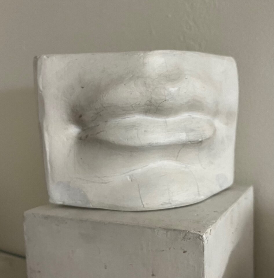 Губы эти (как и гипсовые уши, носы или глаза) сделаны по образцу мраморной статуи Давида, работы Микеланджело Буонарроти. Нужны эти «гипсы» , в первую очередь, для изучения форм головы, но также Давид Микеланджело, являя собой канон классических пропорций, претендовал на то, чтоб считаться эталоном гармоничного тела.