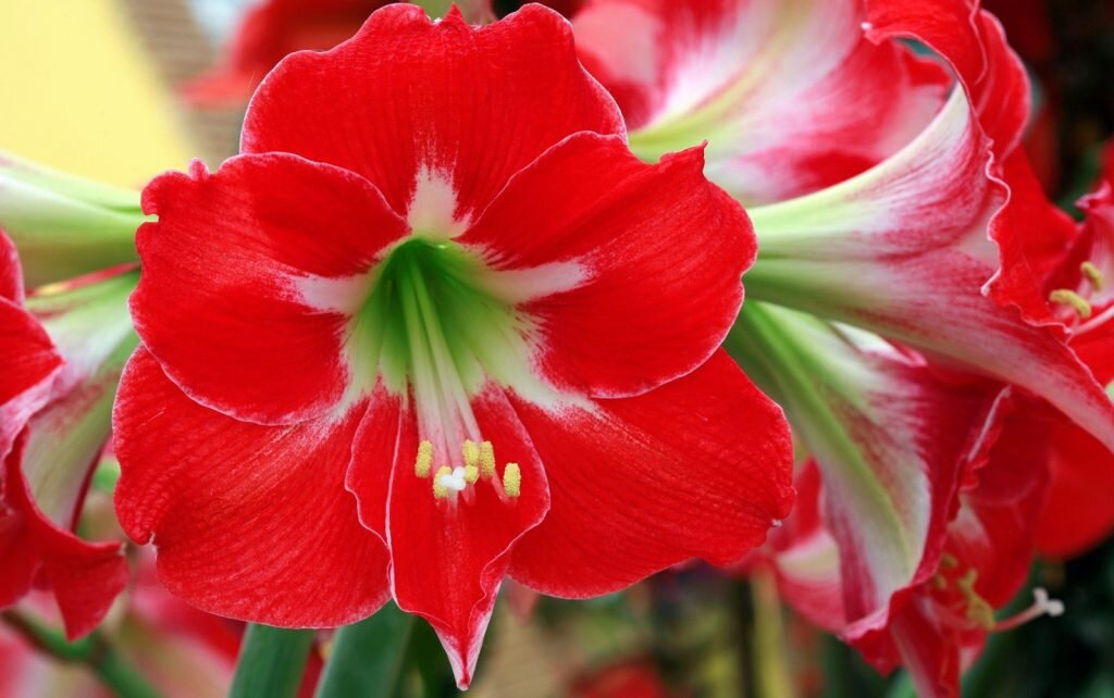 Роскошный амариллис привлекает красотой своего цветения. Этот представитель луковичных давно и успешно адаптировался к жизни на подоконниках. Как ухаживать за амариллисом в домашних условиях – читайте в этой статье. Краткое описание цветка Амариллис – луковичный многолетник. Является травянистым растением, отличается высокой декоративностью цветения. В природе встречается на территориях Австралии и Южной Африки. В комнатном цветоводстве обычно используются его гибридные формы. Соцветия амариллиса располагаются на плотных цветоносах, включают в себя до 12 цветков. Цветки яркие, крупные, воронковидной формы. У гибридов они еще более выразительные. Окрас цветков может быть разным, основные оттенки – белый, красный, розовый. Как правило, цветение амариллиса начинается в конце лета или с началом осени и продолжается около 60 дней. В этот период на растении отсутствуют листья. Листья амариллиса узкие, длинные, расположены в два ряда в прикорневой зоне. Как ухаживать за амариллисом Уход включ