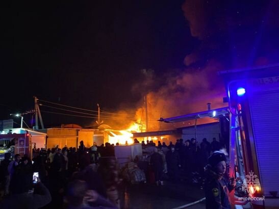 Пожару присвоен третий ранг сложности. Некоторые владельцы павильонов, рискуя жизнями, бегут в горящие постройки, чтобы забрать уцелевшие вещи.