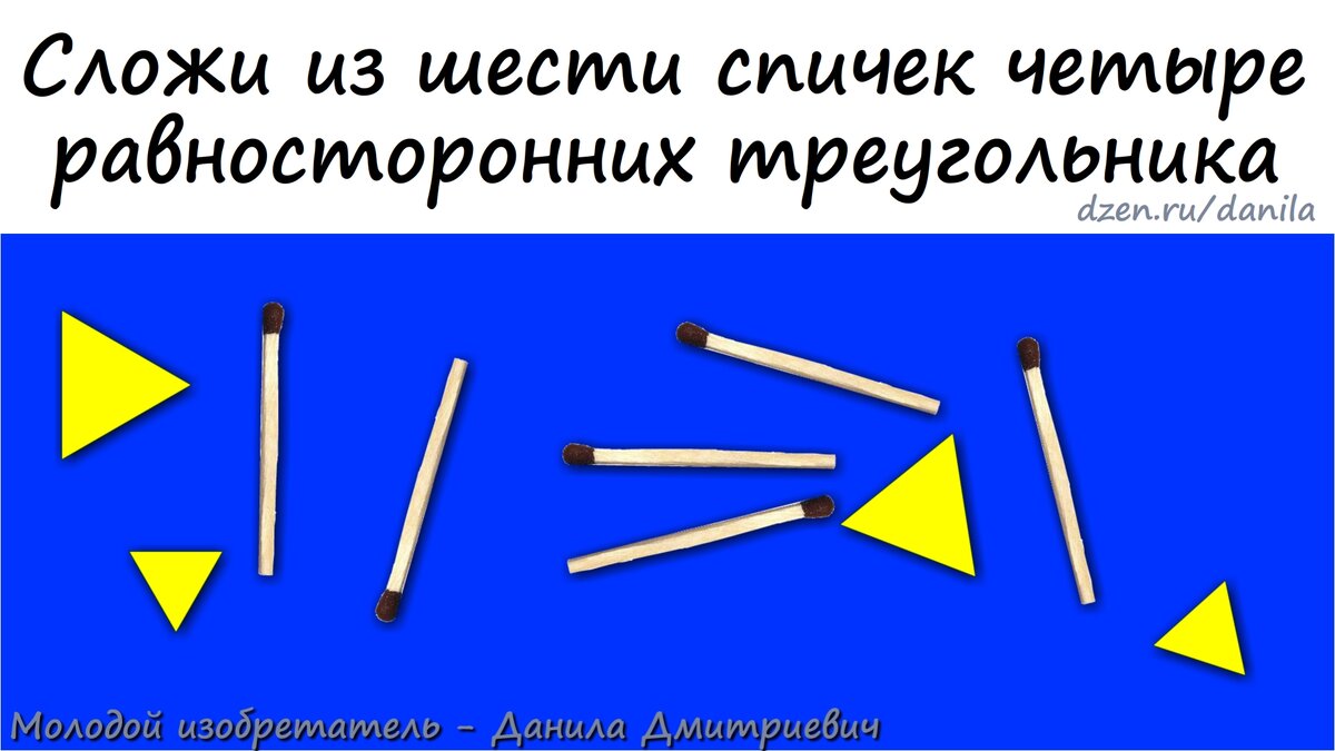 Вы сделаете это ? Сложив всего из шести спичек четыре треугольника ? Сможете догадаться как это сделать?