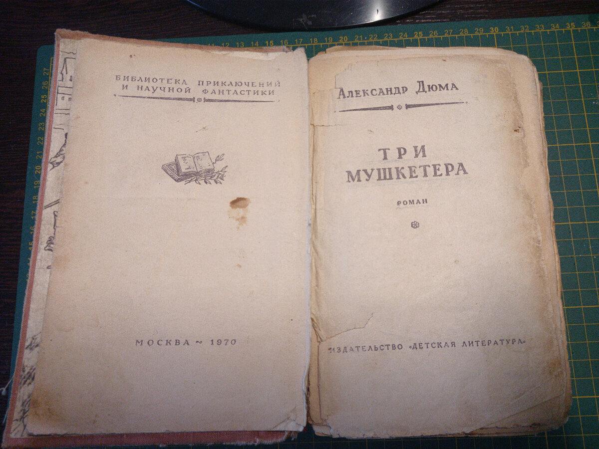 Мой первый опыт "реставрации" книги состоялся ещё в школьном детстве, когда в мои руки попалось бессмертное произведение Александра Дюма "Три мушкетера" в серии "Библиотека приключений и научной фантастики" 1970 года издания.