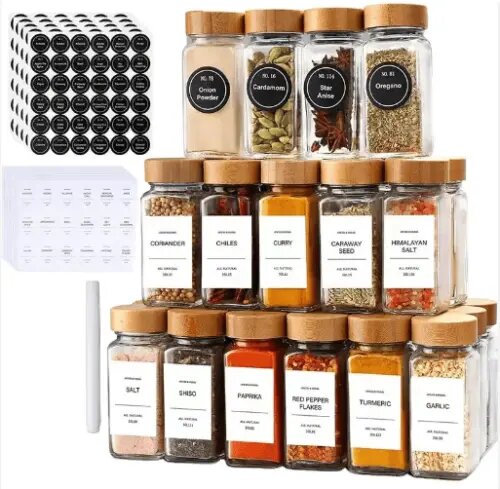 На 1688 удалось найти не просто аналогичный товар, но даже лучше. Стеклянные баночки для специй шли набором: наклейки + карандаш для надписей + ёршик для мытья этих баночек. Каждый набор упакован в отдельной коробочке в пене, что удобно при продаже на маркетплейсах.