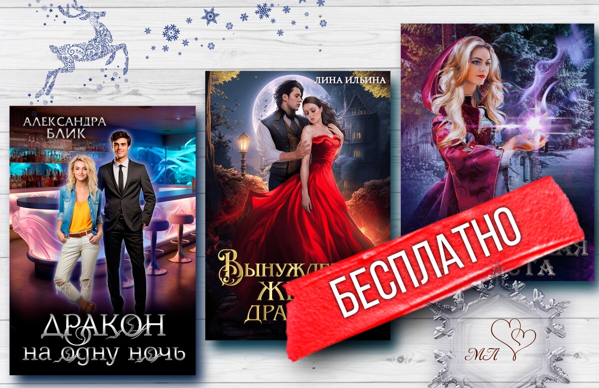 Во-первых, всех с календарной зимой, не успеем оглянуться и наступит Новый год🎄. Во-вторых, с пятницей. Вас, надеюсь, ждут интересные выходные. Ну а я могу предложить вам три бесплатные истории, которые помогут вам эти выходные скрасить. Если у вас возникнуть проблемы с поиском, то обращайтесь и я помогу. Приятного чтения! 📖 "Дракон на одну ночь" Александра Блик О чём книга? Я так хотела попасть на отбор невест и выделиться, что рассказала свои сокровенные мысли... на камеру. И это попало в сеть. И теперь все смеются надо мной и гадают с кем же я лишусь невинности. А не пойти ли им... лесом. Вот возьму и пересплю с первым встречным. Тот красавчик в баре - отличный вариант. Главное, потом не продолжить знакомство, поддавшись на уговоры. Вас ждут: 💖 невинная героиня 💖 шикарный дракон 💖 истинная пара 💖 магия в современном мире 💖 юмор "Вынужденная жена дракона" Лина Ильина О чём книга? Моя сестра с самого детства была обручена с соседним лордом. Но накануне свадьбы она сбежала. И т