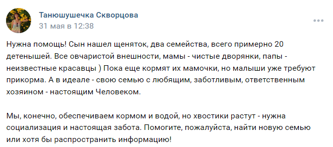 Но мы пристроили 15 щенят, стерилизовали двух их мам и часть девочек.