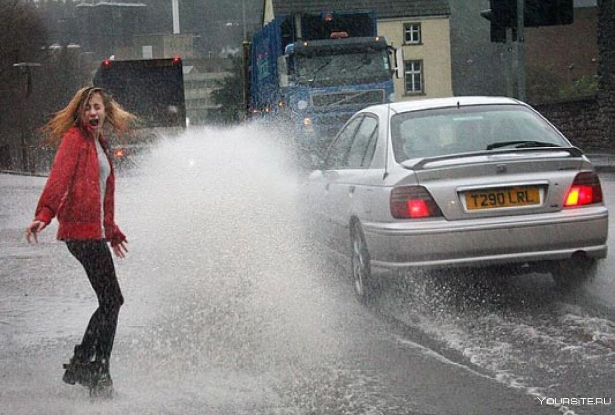 Обедала Люба всегда в кафе на первом этаже. Как всегда, подошла к заветным дверям, а там написано «санитарный день», пришлось возвращаться в кабинет, надевать куртку. А время идет, а тут еще рядом нет перехода… В общем, запаниковала Люба, что не уложится в обеденный час. Идет, а вокруг огромные лужи, а около кромки шоссе настоящие моря. И вдруг ее обдало грязной водой с головы до ног, даже лицо все было в брызгах.