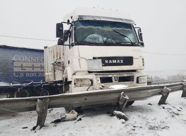 Мужчина пострадал в ДТП с КамАЗами в Воронежской области. Об этом сообщили в региональном УМВД. 31-летний житель Саратова за рулём КамАЗа не справился с управлением и врезался в металлическое ограждение. Остановившийся грузовик перекрыл дорогу другим транспортным средствам. После в стоящий КамАЗа влетел другой грузовик той же марки под управлением 52-летнего жителя Пензенской области. В результате ДТП пострадал водитель из Саратова. На место аварии отправили скорую помощь. Из-за ДТП перекрывали участок трассы М-4 «Дон». Сейчас открыто движение только по левой полосе дороги, сообщает «Автодор».