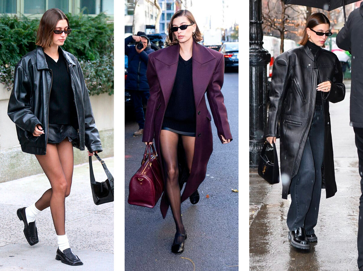 Наблюдать за образами Хейли Бибер — сплошное модное удовольствие. Модель знает, как вызвать восторг своим уличным стилем каждый раз, когда она выходит на улицу. Предметы гардероба Хейли обычно состоят из непринужденной уличной одежды, пальто-оверсайз и монохромной палитры. Она сочетает классические вещи так, что каждый может вдохновиться и, при желании, повторить образ. Выбирая пальто или куртку на предстоящий сезон, черпай идеи у Хейли Бибер. Ниже ты найдешь образы уличного стиля модели, смело вдохновляйся примером Хейли и не бойся экспериментировать! Образ #1 Модель выбрала оверсайз-пальто прямого фасона. Она сочетает его с джинсами, а завершающий штрих — солнцезащитные очки и лоферы в мужском стиле. Чем лаконичнее — тем лучше. Так что для неспешных прогулок в выходные бери на заметку этот лук. Образ #2 Ставим лайк за невероятно трендовую кожаную куртку. На этот раз модель появилась на публике в шикарном повседневном total-black луке. Бибер сочетает эффектную куртку со свободным х
