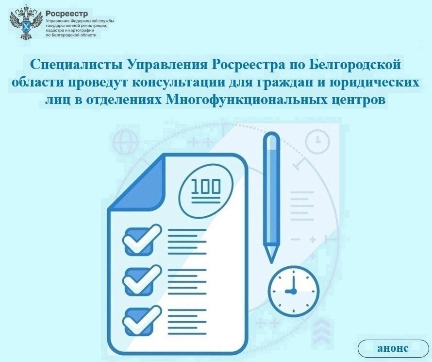 Специалисты Управления Росреестра по Белгородской области проведут консультации для граждан и юридических лиц по вопросам постановки объектов недвижимости на государственный кадастровый учет и (или) осуществления государственной регистрации прав: