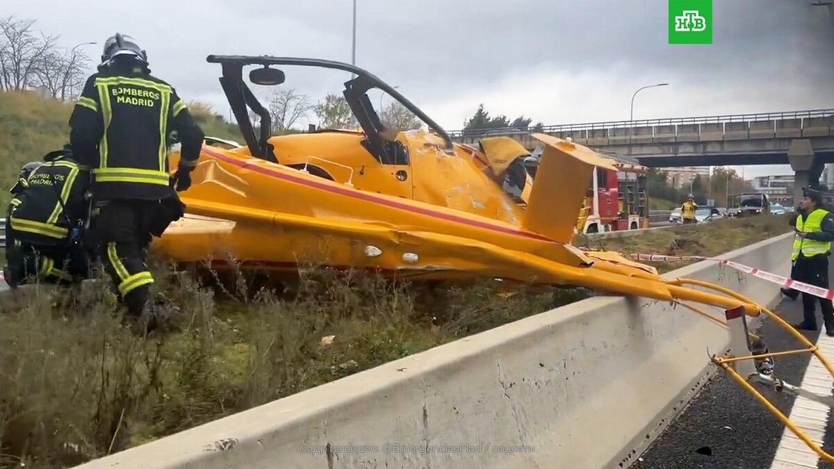 [ Смотреть видео на сайте НТВ ] В Мадриде потерпел крушение вертолет, участвовавший в авиационной ярмарке. Он упал на одну из кольцевых дорог города. Есть пострадавшие. Как сообщает служба спасения Мадрида на странице в соцсетях, вертолет совершил жесткую посадку на кольцевой дороге М40. Минимум три человека пострадали. «Один из пассажиров выбрался сам, другого спасла мадридская пожарная бригада», — говорится в сообщении. Членов экипажа доставили в больницу. У одного из них обнаружили легкую черепно-мозговую травму, у другого, предположительно, перелом бедра. Кроме того, пострадал водитель автомобиля, который ехал по трассе, у него легкие ранения. Воздушное судно участвовало в авиационной ярмарке, организованной Европейской вертолетной ассоциацией и Советом по авиационной безопасности ЕС. Как пишет газета El Mundo, причиной крушения мог стать сильный порыв ветра. [ Смотреть видео на сайте НТВ ]