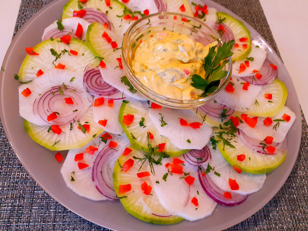 Салат из редьки и дайкона с сырным соусом. Просто, вкусно и красиво!