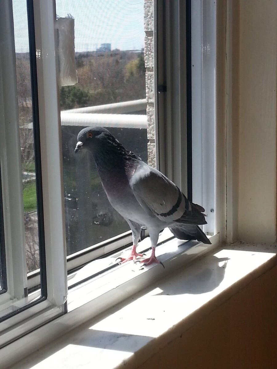 Я подобрал голубя 18 декабря 2018 прямо у подъезда дома на проезжей части. Просто оказался в нужное время, в нужном месте. Иначе его бы раскатали по асфальту придурковатые канадские автолюбители. Уже на улице заметил раненое левое крыло. Накануне в нашем дворе голубей гонял огромный стервятник. Возможно это и было делом его клюва и крыльев. Это был уже третий голубь на моем счету. Но когда принес домой и поместил в огромную картонную коробку, то обратил внимание на странную проблему, не известную мне на тот момент. Я махровый собачник и знаю все про американских бульдогов. Мой пес, Кейси Райбек, был чемпионом в России в 1999-2002 гг. А тут голубь... нежное, хрупкое создание, да к тому же еще и молодой.