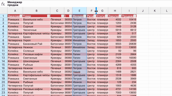 Как придать законченный вид таблице? Создать идеальный отчет и не упустить ни одну деталь поможет наш редактор для работы с табличными данными. Рассмотрим три его фичи, которые помогут упорядочить содержание и привести все к единому стилю без усилий со стороны пользователя. Ширина столбца выравнивается автоматически Для примера составим акт о поставке товара в вымышленный магазин сладостей. В документе есть довольно длинные названия. Например, «Ванильное небо» полностью не вмещается в стандартную ширину ячейки. Программа «МойОфис Таблица» видит это несоответствие и подсвечивает весь столбец синим маркером. Кликните по этой области дважды, и приложение автоматически перестроит столбец по ширине, а все названия четко отобразятся на экране. «МойОфис Таблица» предупреждает о закрепленных областях Закрепы выручают, когда нужно, чтобы важная информация постоянно находилась перед глазами(кстати, как закрепить заголовок или область, мы подробно описывали в этой статье). Однако, если область за