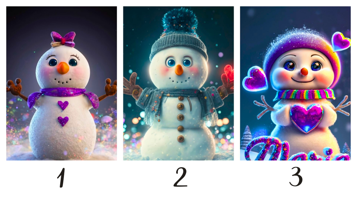 Моменты перехода, каким является последняя ночь уходящего года, всегда окутаны магией ожидания и преображения. Как зеркало, они отражают бесконечность наших надежд и мечтаний, ожидающих воплощения в новом году. Наши традиции, ритуалы, способ празднования – всё это говорит о нас гораздо больше, чем просто предпочтения в декоре или праздничном меню. Они являются символами наших глубинных желаний и скрытых сторон личности. В этом психологическом тесте мы предлагаем вам нечто большее, чем просто выбор симпатичного снеговика. Мы предлагаем вам погрузиться в глубины собственной души и, выбрав одного из снеговиков, узнать, что именно притягивает вас в волшебную ночь Нового года. Решения, которые мы принимаем, даже самые невинные и мимолетные, как выбор забавной картинки, могут открывать двери в потаенные желания нашего сердца. Так что же ваш выбор скажет о вас? Какой снеговик является ключом к вашей новогодней фантазии? Итак, посмотрите на картинку, выберите снеговичка, который вам нравится: