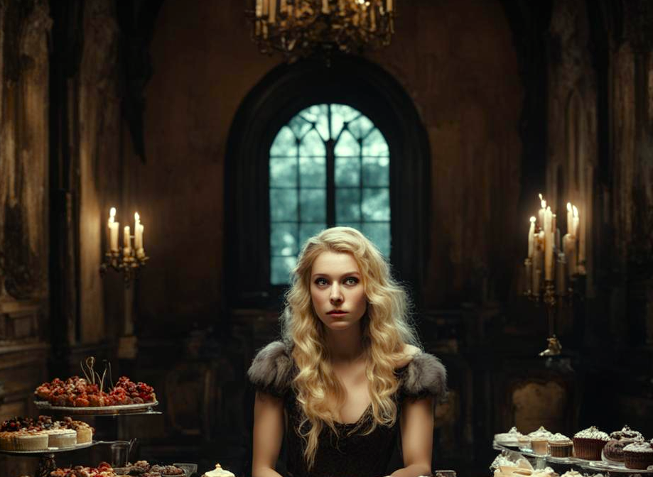 - Кто это? Тоже призрак? - Нина испуганно посмотрела на девушку в белом фартуке, выходившую из двери слева. Девушка улыбнулась им и прошла мимо по коридору в обратную сторону. - Нет, она следит за порядком, - объяснил Олег. Он открыл дверь и пригласил войти внутрь: - Эта единственная жилая комната в этой половине замка. Заходи! И тут прямо у них над головой пролетело несколько чёрных птиц. Олег сказал, что вот это как раз призраки. И снова обрадовался, что Нина видит то же, что и он сам. Но Нине как-то не очень радовалось. Увидев накрытый стол, она удивилась: - Ты мне предлагаешь опять ужинать? Мы же только что... - Это не совсем ужин. Сегодня праздник дегустации! Попробуй это, - и Олег протянул ей большой хрустальный бокал с бордовым напитком. Она сначала отпила немного, ей понравилось. К напиткам шли десерты. - Ты хочешь видеть меня толстой? - засмеялась она, держа в руке кусок чизкейка. - Я хочу видеть тебя моей, любой, - серьёзно произнёс хозяин мрачного замка, наполняя бокал Нины