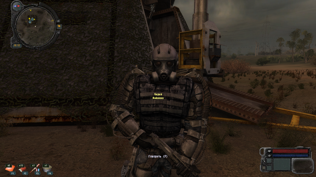 В этой части STALKER мы часто встречаемся с наёмниками в бою, но не все они настроены агрессивно с самого начала. Наверняка вы встречали группу наёмников, которым очень хочется кушать или группу охраняющую бункер учёных. Вот среди охранников бункера и затесался один старый знакомый. Это Череп и у него есть дробовик. На слова он скуп и просто патрулирует вокруг. Но почему же я назвал его старым знакомым?