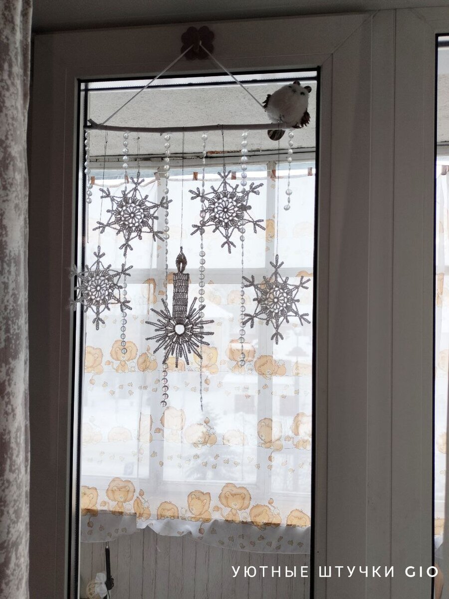 Подготовка к Новому Году идет полным ходом и вчерась я отправилась по дрова 😁 Насмотрелась на пинтерест и решила, что мне очень не хватает веточек. Благо под окнами валяется куча хвороста еще с осени - коммунальщики или кто там этим занимается, кусты обрезали, а прибрать за собой не прибрали. Ну а мне и хорошо) Выудила на мой взгляд несколько симпатичных веточек и принесла их домой. За эти несколько месяцев они несколько отсырели и кора с них снималась очень легко, чуть ли не как чулок. Хотя изначально мне хотелось, чтобы осталась фактура. Ну ничего, голенькие и гладенькие они тоже хорошо смотрятся. Отпилила ножовкой по металлу необходимую длину, покрасила белым акрилом - у меня интерьерный акромар, дождалась высыхания и вуаля... Да, на балконе у меня висит тюль с тигрятами 🐯, белая смотрелась бы эстетичнее, но что есть, то есть 😁 А вот так это выглядит в ночное время Повесила эту композицию на балконную дверь - крючок, совушка и бусины из Фикс Прайса. Я бы еще хотела повесить на ве
