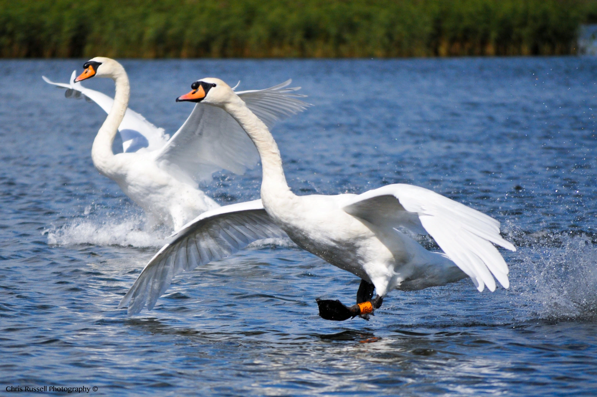 Лебеди выплыли к берегу и, вытягивая свои изящные шеи, оглядывали близлежащую акваторию.