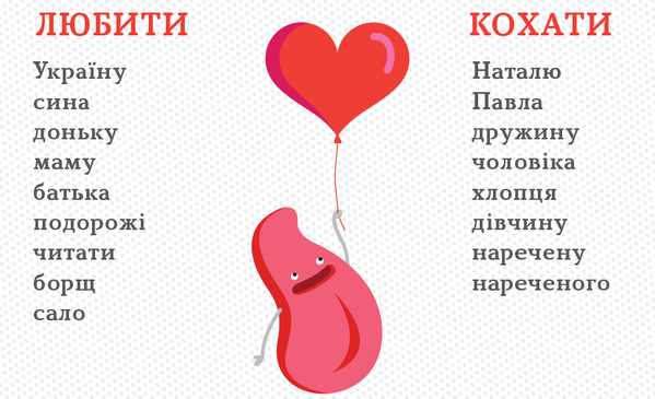 То, что первоначальным значением слова кохать было значение «касаться», подтверждает сочетаемость этого слова в украинском языке.