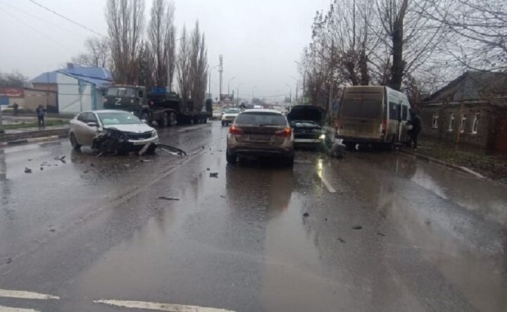 Иномарка вылетела на встречку и протаранила 2 машины и автобус в Новочеркасске
