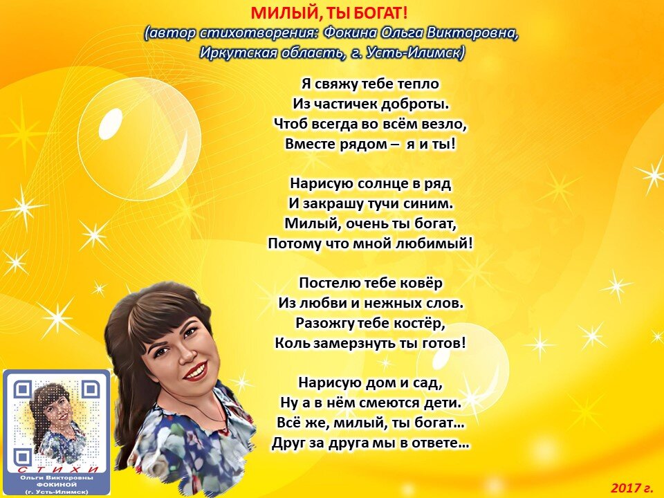 Милый, ты богат! (стихи Ольги Фокиной, Усть-Илимск)