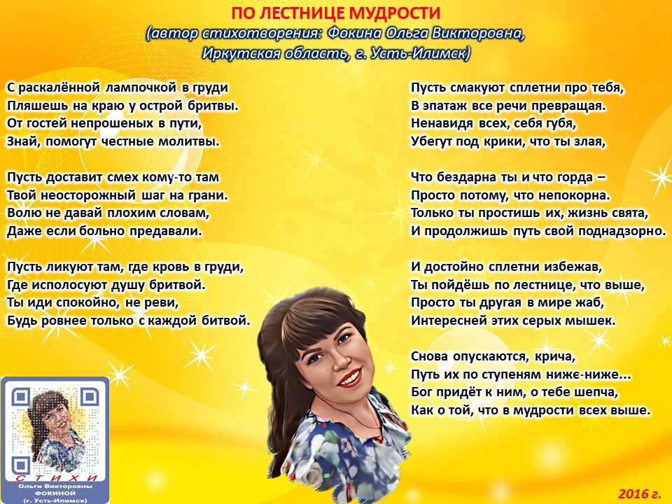 По лестнице мудрости (стихи Ольги Фокиной, Усть-Илимск)