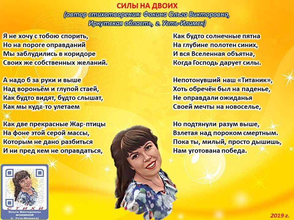 Силы на двоих (стихи Ольги Фокиной, Усть-Илимск)