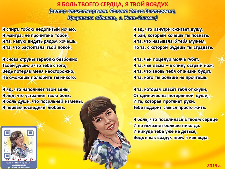Я боль твоего сердца, я твой воздух (стихи Ольги Фокиной, Усть-Илимск)