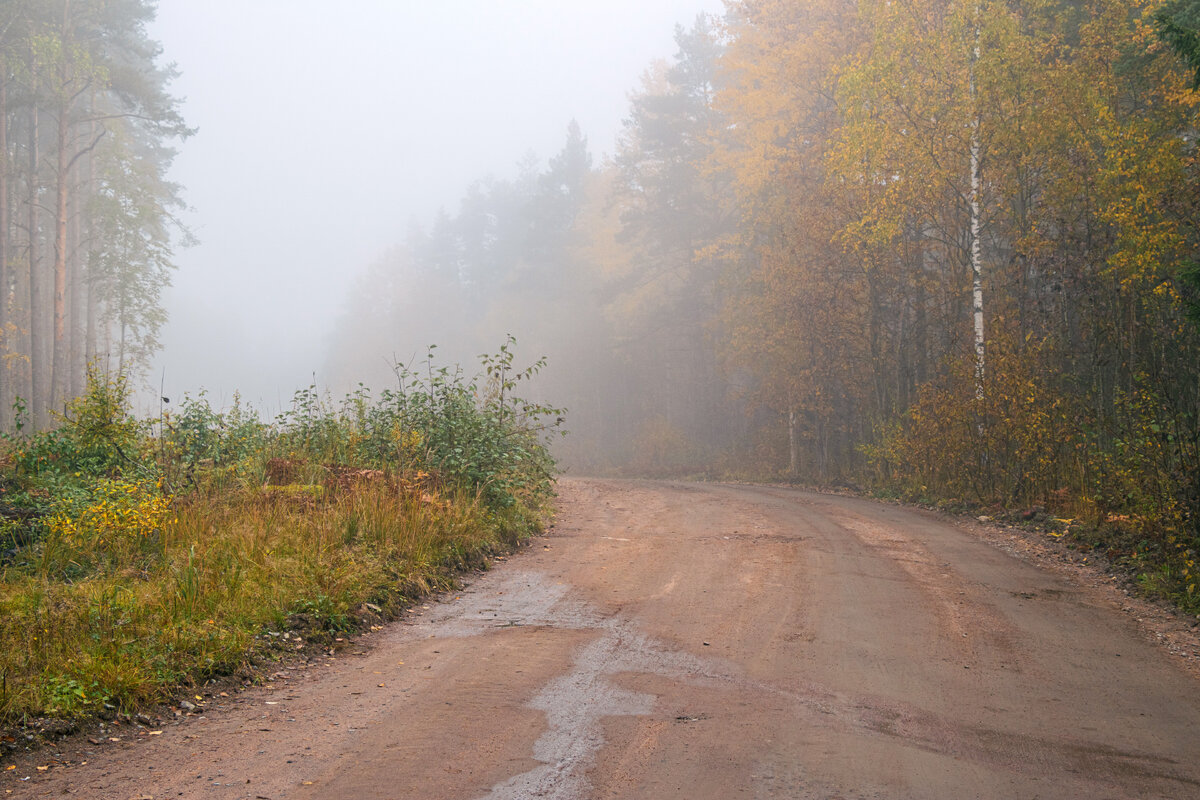 11:30, вокруг всё ещё густой туман От грунтовки, на которой остановился автобус, нужно метров 300 пройти по лесу. Без тропинок, просто напрямки по чащобе. Ботинки тонут во влажном мху и зарослях черники... Периодически попадаются деревья со старыми отметинами от добычи смолы На ветках клочками висит лесная борода - лишайник уснея. Он очень чувствителен к чистоте воздуха и растёт только там, где нет никаких загрязнений. А вот и выход гранита на поверхность. Повсюду валяются готовые отколотые блоки с характерными следами. Плоская верхушка скалы, от которой отламывали гранит Начинает пробиваться солнце и туман тает на глазах Всякая мелочь под ногами