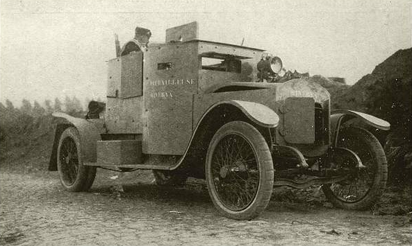 К 1914 году развитая дорожная сеть и равнинная местность Бельгии благоприятствовали широкомасштабному использованию броневиков. В 1912 году бельгийская армия уже создавала небольшие патрульные подразделения из обычных дорожных автомобилей, оснащенных пулеметами. В августе 1914 года несколько таких автомобиля были переданы инженерам для бронирования, а затем приняты обратно в бельгийскую армию. Самой известной из этих машин была Minerva, построенная в Антверпене. Этот прочный и мощный автомобиль мощностью 26 сил был отправлен «голым» (без кузова) на завод Cockerill, расположенный в Хобокене, и оснащен бронелистами толщиной 4 мм. Чтобы справиться с возросшим весом, на задней оси была добавлена вторая пара колес. Для большей жесткости и прочности конструкции, дверей не было совсем, экипажу приходилось забираться в машину сверху. В открытом корпусе (прозванным «ванной») размещались механик-водитель, командир, пулеметчик и его помощник (хотя экипаж мог варьироваться от трех до шести че