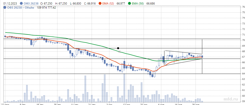 В общем, при гадании по чертам и резам на пергаменте, облигации ОФЗ 26238 путь скорее вниз, чем вверх.