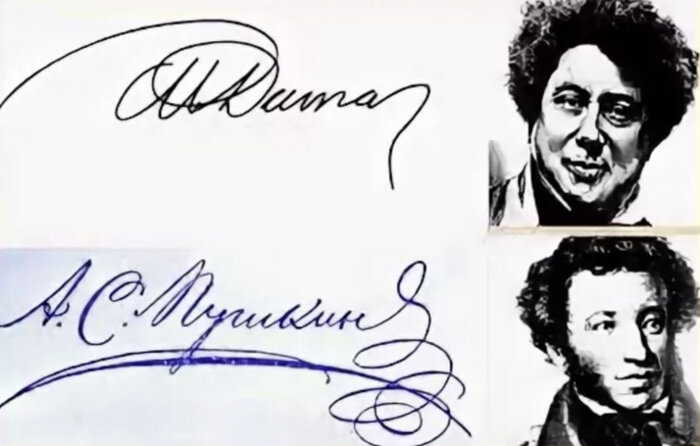 Александр Дюма также в полном варианте соединял своё имя и фамилию. Буквы писатель выводил также спокойно, уверенно.