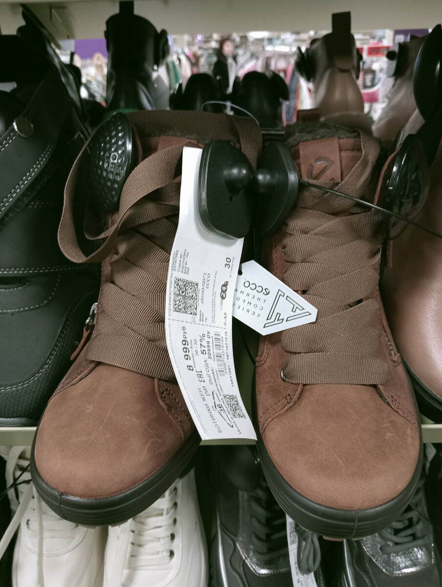 Всем привет! Давненько я не заглядывала в сток "Фамилия" и вот по дороге забежала. Много интересных товаров, особенно к новому году 2024. Но я решила завернуть сначала в отдел с женской обувью. По сравнению с прошлым годом цены заметно выросли, но попадаются и красные ценники. Давайте посмотрим вместе какие бренды можно найти? Например, попались на глаза зимние ботинки от бренда Экко. Ценник 8999 рублей (натуральная кожа) Не дешево, но в самом магазине пишут такие стоят 20999 рублей. Женские угги черного цвета с блестками уценили до 3599 рублей. Указано что верх натуральная кожа, а мех искусственный. Как всегда в "Фамилии" много обуви не ходовых цветов. Хотя на каждый товар найдется свой покупатель. Вот розовые ботинки от марки Patrol можно купить за 3499 рублей. МАтериал верха искусственный велюр, мех тоже не натуральный. Зимние кроссовки из натуральной кожи продают за 4899 рублей. Очень удобные, мягкие, размер тоже ходовой. Высокие ботинки от Tamaris обойдутся в 5499 рублей