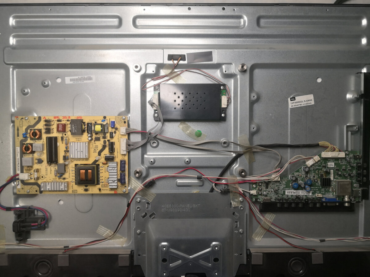 Всем здравствуйте! На днях к нам приехал телевизор Thomson t40e53hu с жалобой от клиента - через 10-15 минут начинает дергаться и рябить изображение. При первоначальном включении дефект не обнаружился.